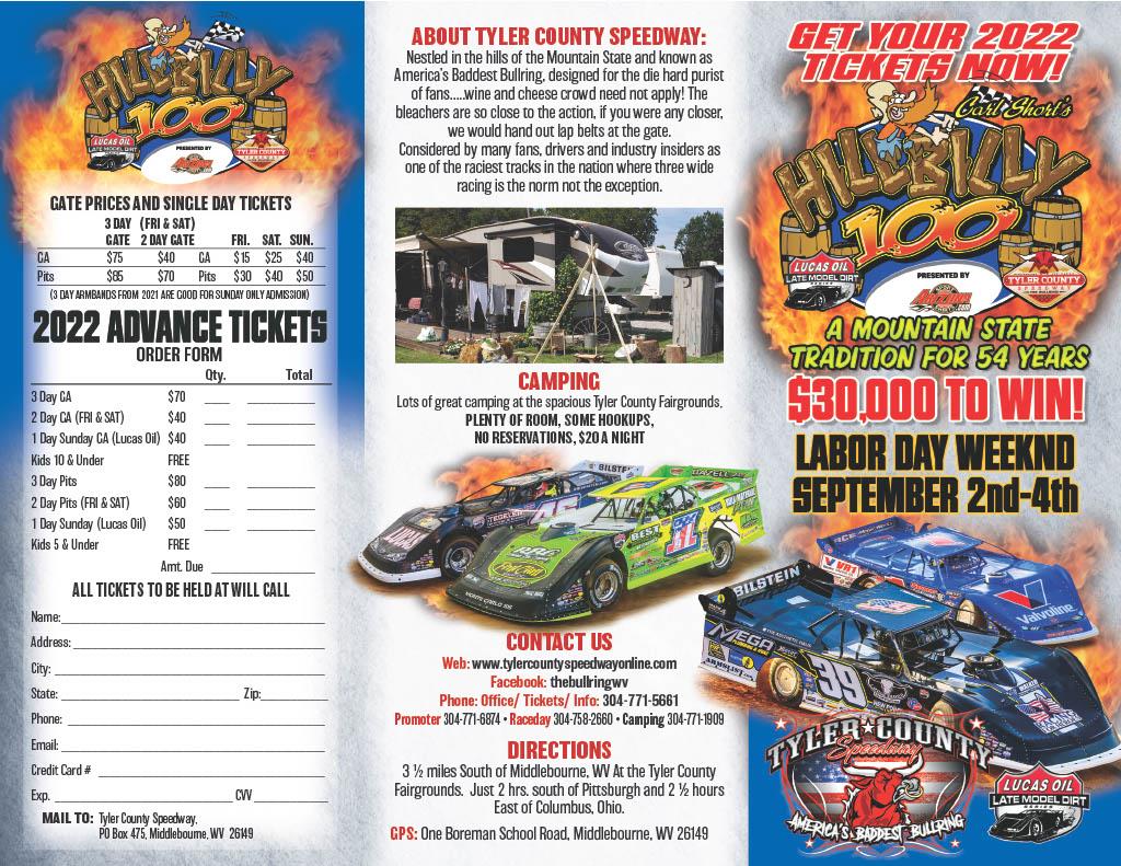 Make sure you’re a part of the history & excitement as the Tyler County Speedway celebrates 54 years of Mountain State Motorsports tradition and excellence with the running of the 2022 ‘Hillbilly Hundred’!