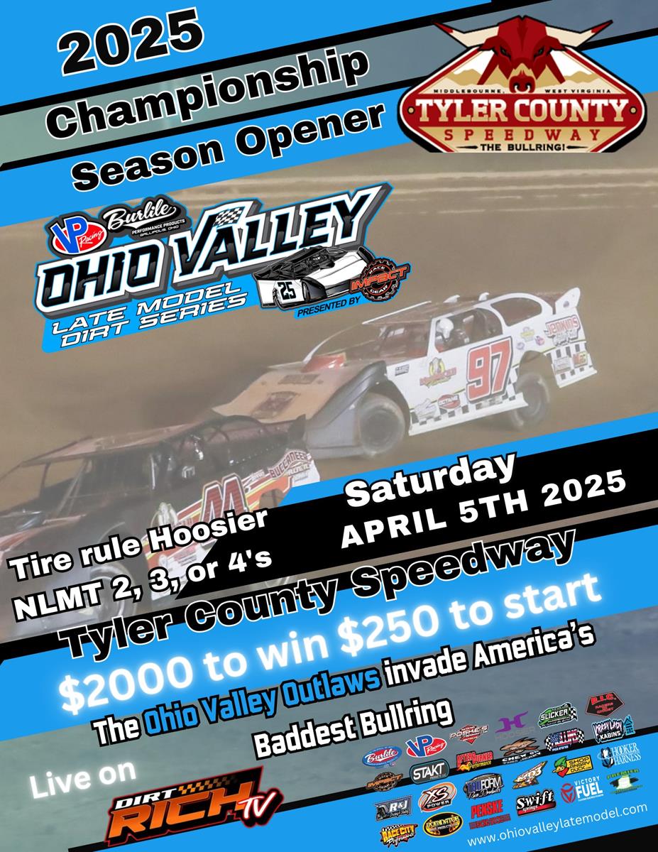 The 2025 Ohio Valley Late Model Dirt Series Championship Season Opener is set to kick off at Tyler County Speedway – The Bullring!